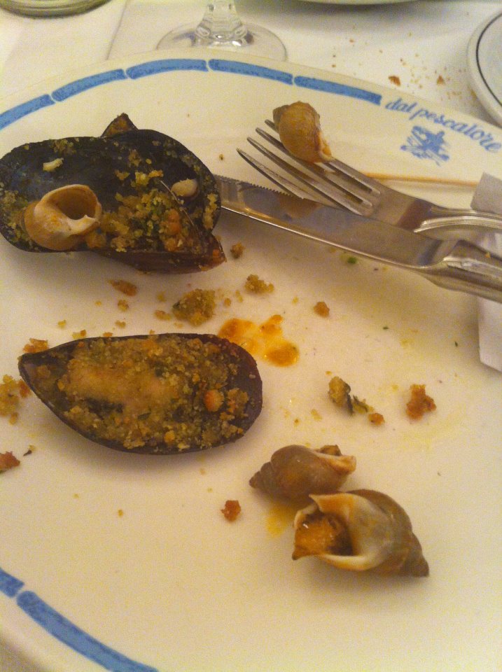 För väldigt många av oss är Thomas Nordahl känd som kommentatorn på tv som visste en hel del om italiensk fotboll. Det är viktigt att veta att han även har en proffskarriär bakom sig både som fotbollsspelare och som fotbollstränare. Inne på hotell i lobbyn satt Thomas nu tre meter ifrån oss och delade med sig av allt han varit med om nere i Italien, det var ett väldigt intressant och givande föredrag. Senare på kvällen gjorde han oss sällskap till en restaurang vid namn Trattoria Del Pescatore, restaurangen serverade skaldjur. Skaldjur, kära läsare, är något jag verkligen inte tycker om att äta, men här kunde ni se mig stoppa i mig musslor, sniglar och mycket mer. Middagen avslutades med en härlig Sorbetglass. Efter restaurangbesöket åkte en del tillbaka till hotellet, medan de andra rörde sig vidare mot Corso Como för att se vad Milanos uteliv hade att erbjuda. Ute i Corso Como finns ett stort utbud på diverse klubbar och krogar. Natten ute på Milanos klubbar var väldigt trevlig, men den tog ganska hårt på en del av våra vänner (ni vet vem ni är).