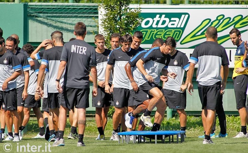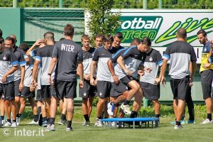 Inter har just avslutat sitt tredje träningspass för veckan. Laget koncentrerade sig på ett antal övningar där fokus låg på olika färdigheter, sedan gick de vidare till tekniska och taktiska övningar. Avslutningsvis körde de en träningsmatch på liten plan.