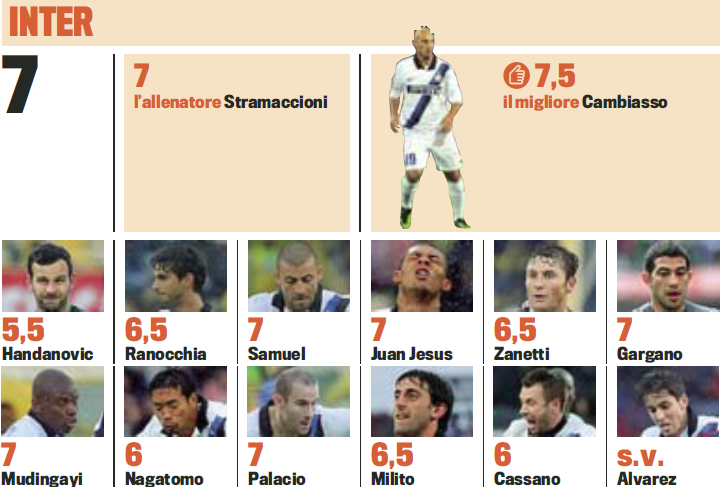 Gds: Player Ratings (Bologna-Inter 1-3)