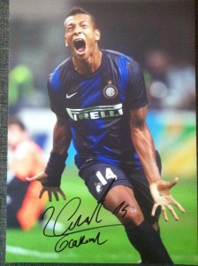 Därför auktionerar vi ut signerade matchtröjor på Javier Zanetti, Philippe Coutinho samt ett högupplöst foto taget av fotografen Thomas Salme på spelaren Fredy Guarin när denne gjorde sitt första mål i Inter, självklart har Guarin signerat fotot som är 31cm x 46cm stort.