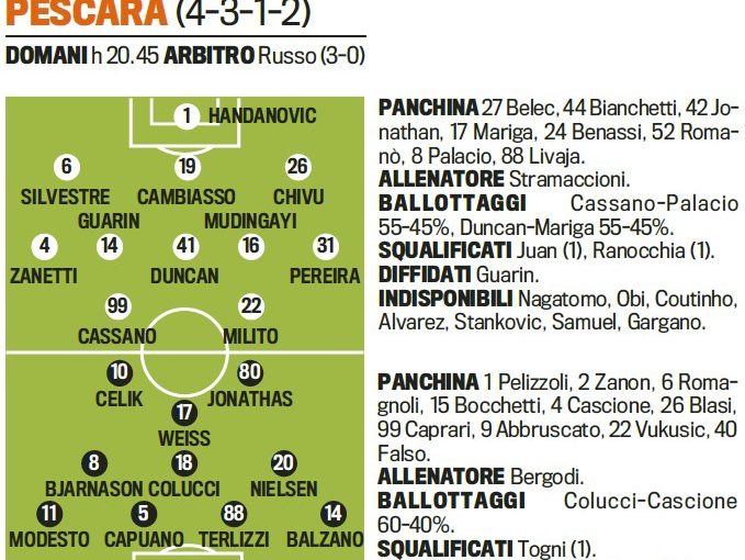 Probable Line-ups: Inter-Pescara