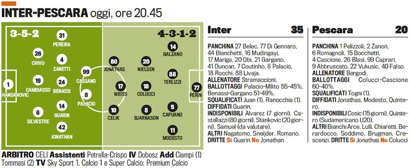 Probable Line-ups: Inter-Pescara