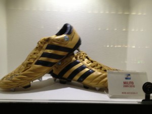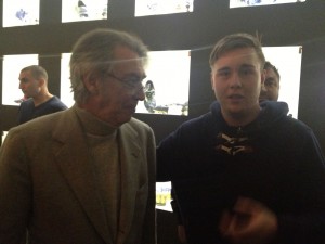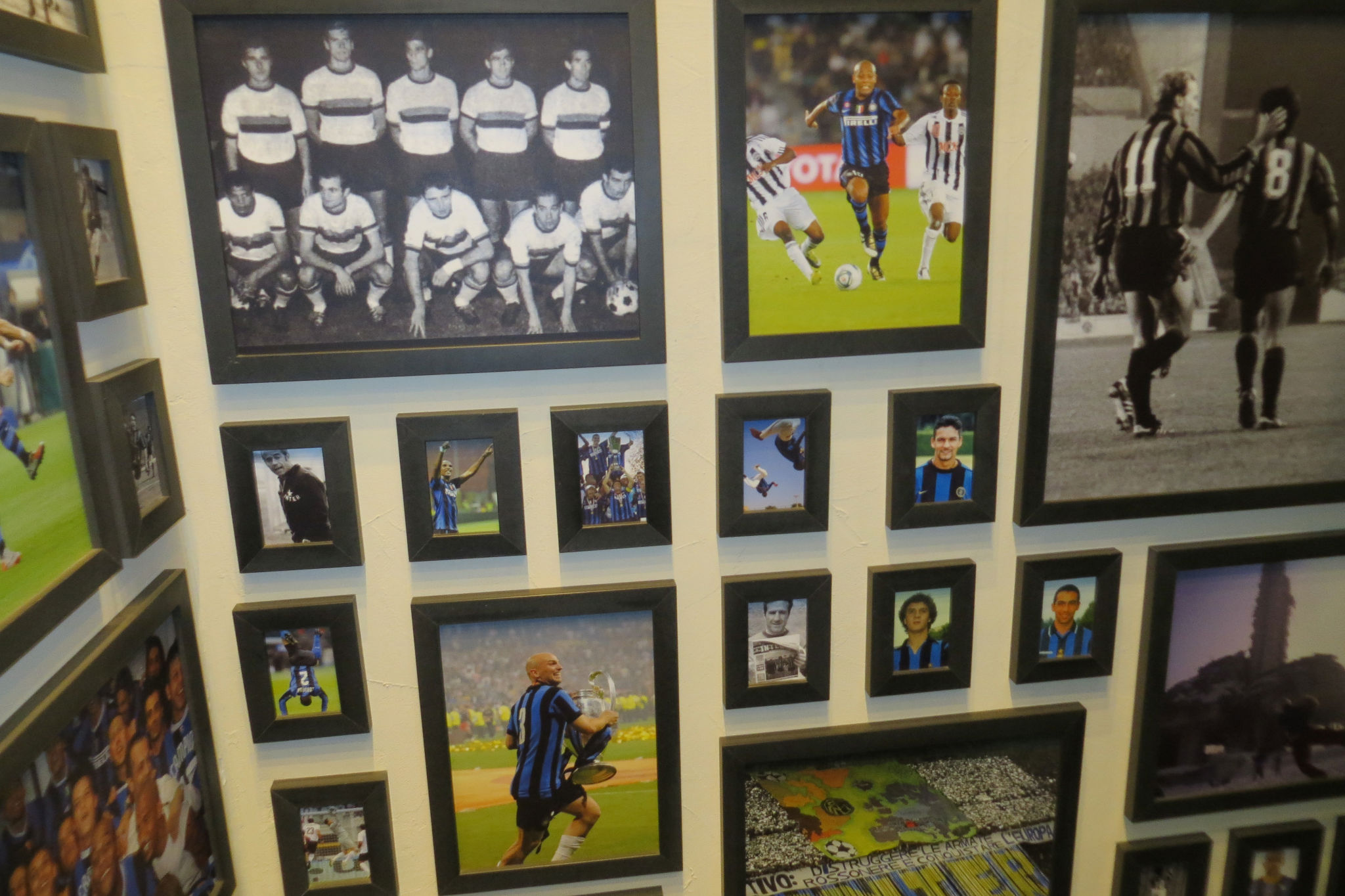 Idag utökades gruppen till ca 30 personer och vi drog iväg till Zanettis restaurang. En mäktig samling av fotbollsskor mötte oss innanför dörrarna. Prydligt uppställda i glasmontrar kunde man skåda skor från bl.a. Baggio, Zanetti, Cassano och Maldini. Maten på Zanettis och Cambiassos restaurang var underbar och det var sällskapet också. Senare på kvällen när vi hade ätit upp så fixade Thomas dit Milly Moratti och det var en fantastisk upplevelse. Man trodde inte kvällen skulle kunna bli bättre men efter en stund klampade även Massimo Moratti in. Han möttes av stående ovationer av oss alla. Senare på kvällen lät han sig fotograferas men var och en av oss.