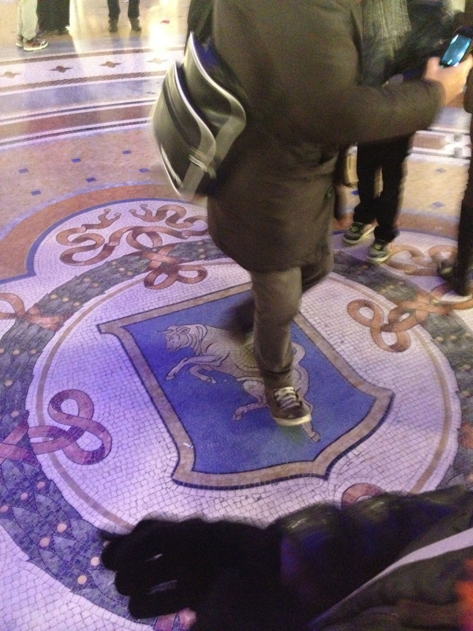 Turen tog oss vidare till den berömda tjuren. Där skulle man sätta hälen vid tjurens skrev och snurra två varv, det ska tydligen göra så att man får tur. Jag råkade till mångas förskräckelse snurra med vänster häl. Sia förklarade för mig att jag måste snurra med högerhälen och då var det bara att gå in och snurra igen.