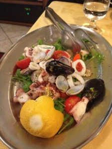 Dagen avslutades på den Napolitanska restaurangen. Förrätten kom in och det var olika delikata parmaskinkor, och salami. Bordet fortsatte att fyllas på med olika maträtter. Det var den godaste maten jag har ätit i hela mitt liv, det var allt från risotto till delikata havsrätter det var helt surrealistiskt, kändes som man befann sig i en Italiensk film där rätt efter rätt bars fram, jag trodde aldrig att det skulle ta slut.