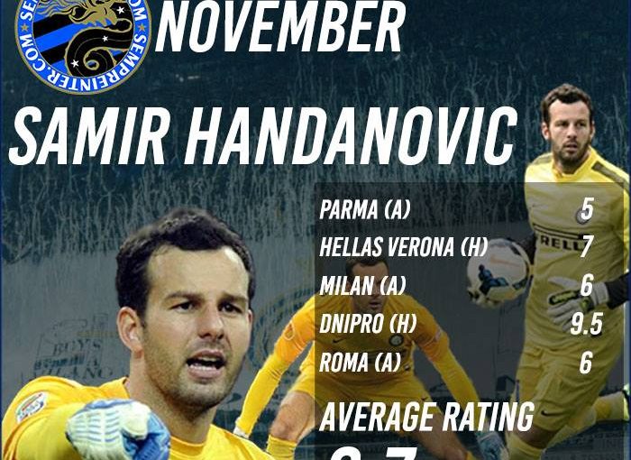 If you’ve been following each Inter game this November, it wouldn’t come up as a surprise that our best player this month has been none other than our goalkeeper, Samir Handanovic.