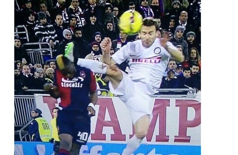 Cagliari’s Danilo Avelar has not forgotten the foul his teammate M’Poku suffered by Hugo Campagnaro. The Inter defender got a yellow card for the challenge but it could have cost him a sending off. Avelar tweted out a picture of the challenge earlier today with the comment: “Is it capoeira or football? Only yellow? What do you think? Boh”