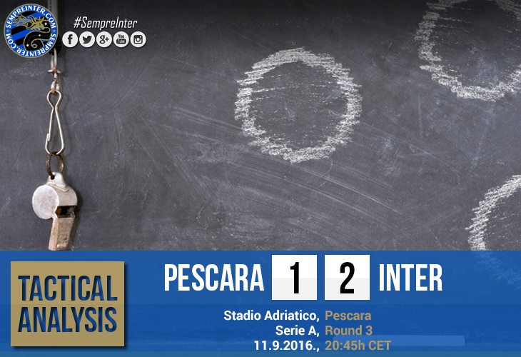 Although Inter conceded a goal due to a careless loss of possession and a defensive mistake that followed it, being also very unstable on the negative transition fase through which Pescara became very dangerous with their fast paced counterattacking, it is Inter’s midfield line during defense that we need to take a look at, especially considering that a match against one the best sides in Europe (at least on paper) is going to take place next weekend.