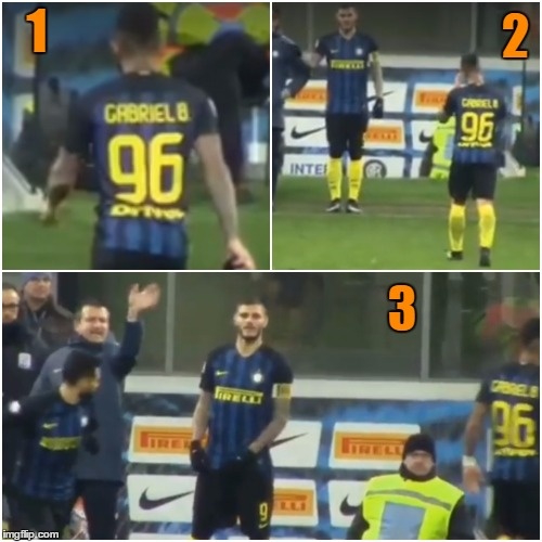 2-Icardi waves at Gabi telling him he should go left and shake Candreva’s hands.