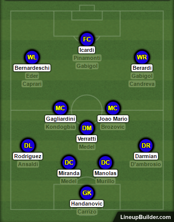 I like this. Candreva and Berardi could take turns on the right wing and I would use Bernardeschi as trequartista with Joao Mario and sell Banega. Keeping in mind that Bernardeschi can play multiple roles, it would be a great signing