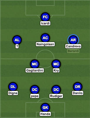 Premium Sports predicted Spalletti’s 4-2-3-1 system that could take field next year – confirming only Handanovic, Gagliardini, Candreva and Icardi. Everyone else is new, from the entire defensive line starting with Real Madrid’s right back, Danilo, but names like Darmian and Spinazzola were left out and could also be alternative targets. In the heart of the defense is Rudiger and free transfer Pepe with Lucas Digne completing the defensive line – Sabatini has searched for a full-back and chose the French after struggling to get playtime under Luis Enrique‘s Barcelona. In midfield, the pair GagliardiniKrychowiak, with Radja Nainggolan who would be positioned behind the striker complete the midfield. Berardi and Candreva on the wings supporting the man in front, Mauro Icardi.