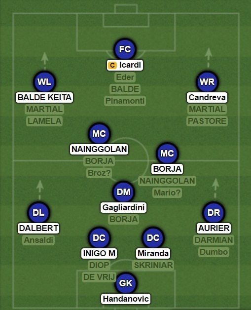 Nagatomo, Santon, Medel, Ansaldi, Biabiany, Ranocchia