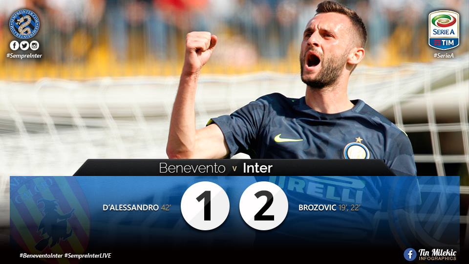 Inter recorded their 6th win in this seasons Serie A after defeating Benevento by 2-1 away at the Stadio Ciro Vigorito in the first meeting ever between the two sides in a competetive fixture.