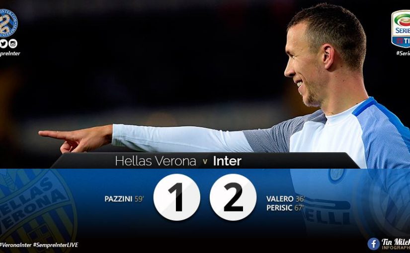 Inter set a new club record by recording their 9th win in their first 11 matches in the Serie A after Borja Valero scored his first ever goal in an Inter shirt and Ivan Perisic hammered home his 4th goal of the season after former Nerazzurri striker Giampaolo Pazzini equalized from the penalty spot.