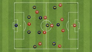In the first half Spalletti once again showed his tactical versatility by changing up his style completely and suffocating Torino with a high press. Inter exploited a man oriented press to put Torino’s defenders under pressure and force them into mistakes, this worked perfectly due to the limited technical ability of the Torino defence. This led to many chances which unfortunately were squandered.