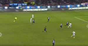 Just over 5 minutes after the substitution and formation change, Udinese struck again on the counter attack, this time from a long ball up to Lasagna with him beating Skriniar in the air and then no one tracked the run of Barak back post so he had it on a plate. Skriniar has got to recognise that a man is running in towards the far post since there is no longer a left-back and Perisic is too far up the field to get back in time however he fails to do this, instead running into the space Miranda is already protecting. 3-1 and game over.