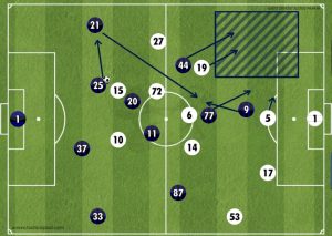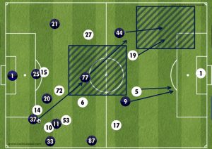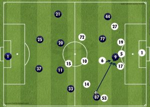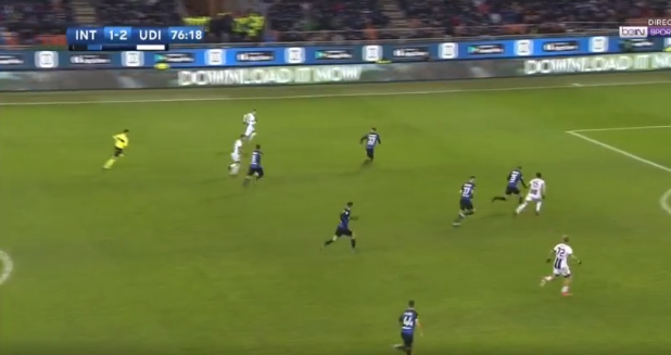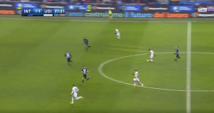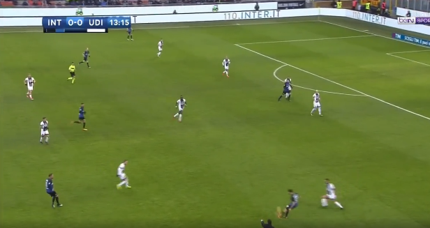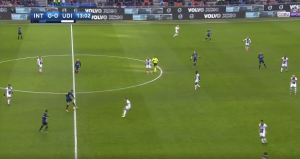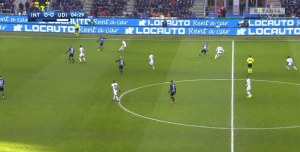 At one point, Udinese tried to replicate the high press Inter do however the composure of Skriniar allowed him to find Brozovic in loads of space further up the pitch, the first time in the game. He then found Ivan free on the wing so within two passes Inter went from their own box to the opposition’s box; a very quick transition and possibly an attack Inter should have capitalised from yet it was the away side who got back quicker. Certainly, an alert for Massimo Oddo to not try that again.