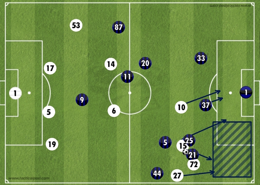 A positive reaction is what the boss would have wanted and that is exactly what he got as Inter went straight on the attack from kick off going down the left side before switching over quickly as Candreva managed to capitalise on a slip from Ali Adnan and whip in a delightful cross for star man Mauro Icardi to volley in. Two individual errors leading to both goals.