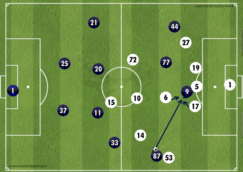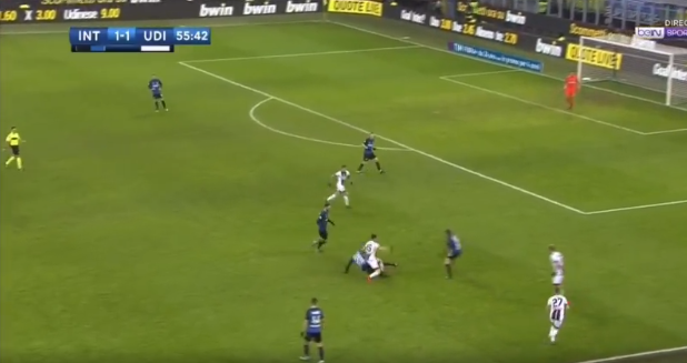 The opening goal of the game started by Candreva trying to force a pass into a clearly marked Mauro Icardi who was always going to struggle to get hold of the ball and hold it up with 3 men ready to pounce onto him. Udinese then countered from this, an instruction most teams coming to the San Siro will use this season so we should be prepared for that at any moment and we were.