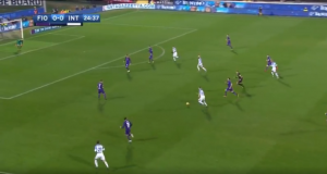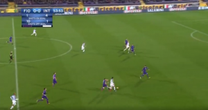 I for one am all for midfield movement and interchanging when it makes sense to cause confusion amongst the opposition’s backline leading to mistakes however Vecino took that to a new extreme. Inter had the ball just inside Fiorentina’s half when Vecino decided to to leave his base and make a run beyond Mauro Icardi and Borja Valero. Something one of the two mentioned should be doing or João Mário as the ball was on his side. This led to a massive gap being left which was targeted as soon as they won the ball back. Luckily, Borja Valero raced back to cover the ground somewhat. A real let off and something I’m sure Spalletti pointed out at half time.
