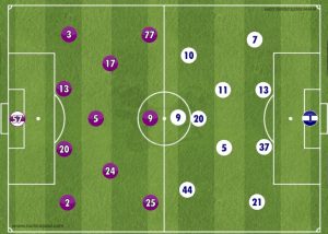 The match got off to a lively start with both teams being given licenses to attack however it was the men in purple who made the most of the space being given to them as they created a number of opportunities within the first ten minutes. It was mainly Argentine, Giovanni Simeone who was on the end of the chances due to his movement creating problems for Inter’s backline but he couldn’t make the most of them. Positive start to the game overall.