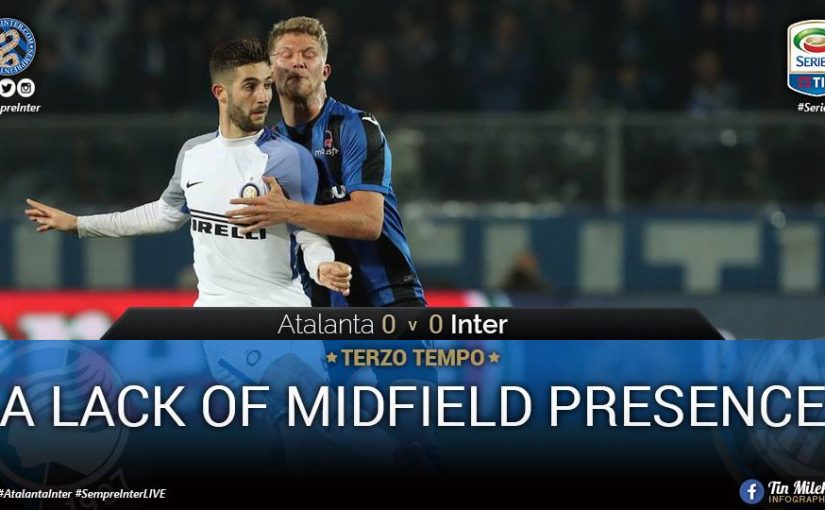 In regards to the wide players in the flat four, Cancelo was probably the best candidate considering Candreva’s lack of form this season but the real issue arrises on the left side. Santon is right footed playing the left and he did so to the best of his abilities but the problem with playing an inverted winger (especially full backs higher up the field) is that they take their initial touch on their inside dominant right foot. They then have to either cut in or make the switch to their left foot to take the space which is time consuming and the fact that Atalanta played such a strong press rendered Santon nearly completely offensively useless. This would have been an excellent time to attempt a Dalbert start, not to much defensive responsibility and all the creativity in the world going forward.