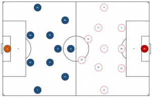 Ivan looked to really exploit this by staying as wide as possible which forced the RCB, Romagna to cover for his RWB and apply some pressure. However, doing this left his position vacant for runners to take advantage of and it also gave Icardi the option of runs which meant his marker had to be a lot more aware and on his toes.