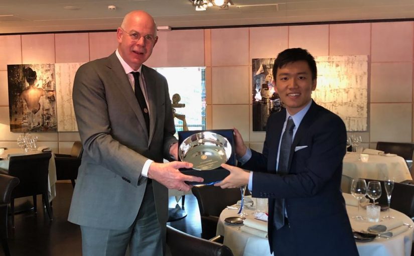 Inter’s Steven Zhang gifted PSV CEO Toon Gerbrands a silver trophy who in turn responded by giving the son of the Inter patron a pennant and a PSV jersey as can be seen below.