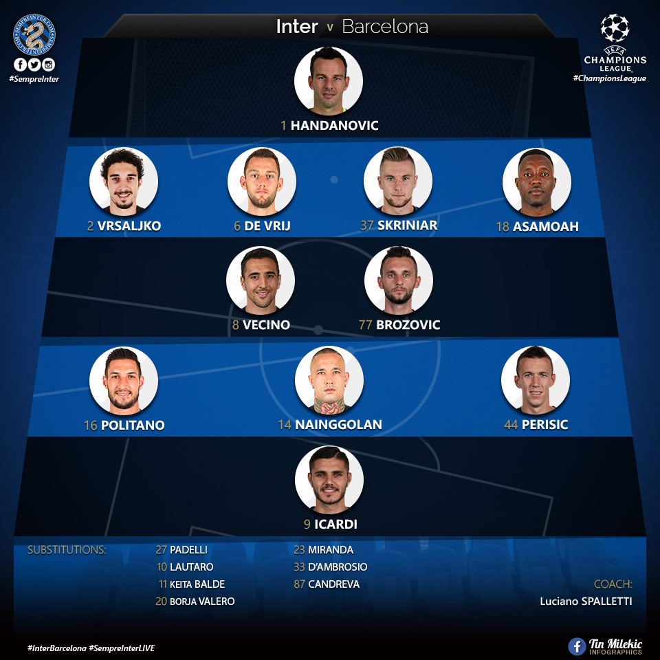 Spalletti opted to play with his most trusted players in the eleven with Vrsaljko on the right, De Vrij and Skriniar in the middle and Asamoah out on the left side. In the holding midfield role we saw Brozovic accompanied by Vecino. In that line of three we saw Perisic, Nainggolan, and Politano all led by the captain himself Mauro Icardi.