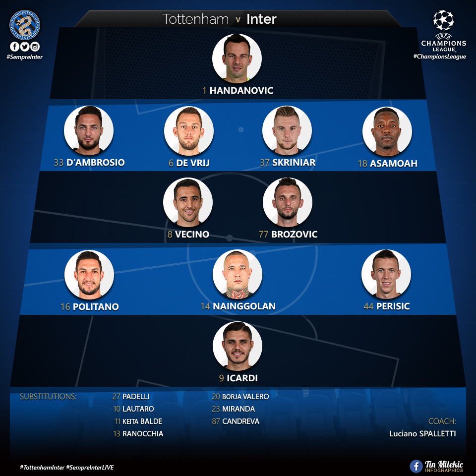 On the other wing Politano showed that he is in great form as he ran his socks off. His workrate is fantastic as is his attitude and if he continues to develop like this Inter have a star on their hands. Up front Icardi was his usual self, chasing down every ball and giving Tottenham’s defenders a minor heart attack every time the ball was played. But when Inter play poorly, he is invisible at best and so he was.