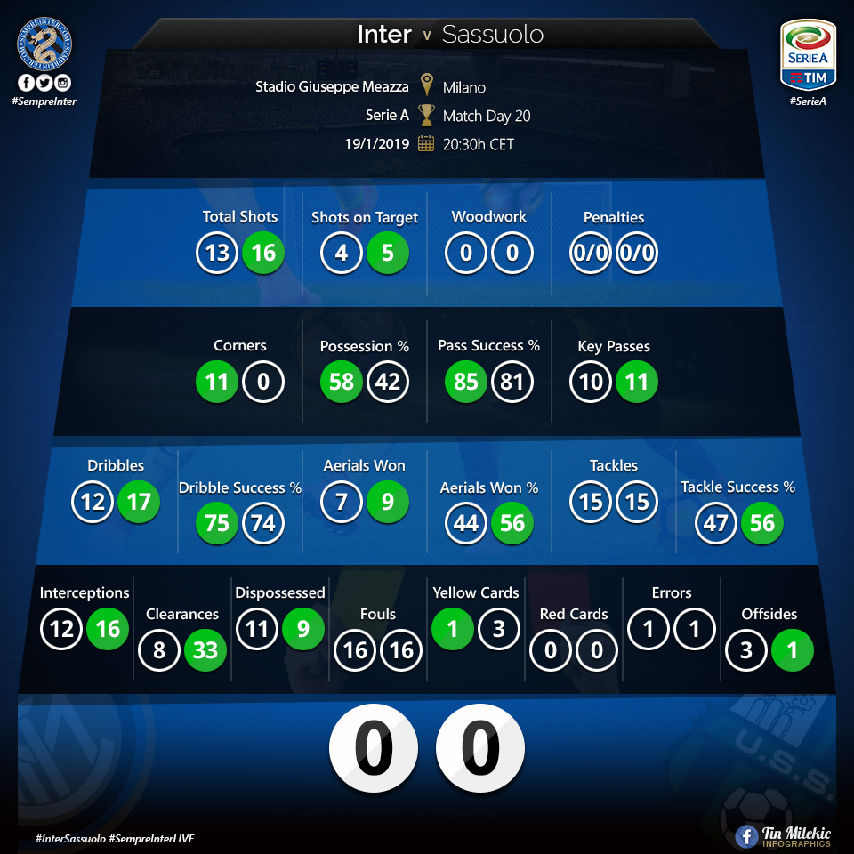 The first Serie A match of 2019 for Inter followed all the patterns of the last fixtures of 2018 even though the points won differ. Whilst the Nerazzurri ended the year with a somewhat undeserved win against Napoli, they began the year with a somewhat lucky point against Sassuolo.