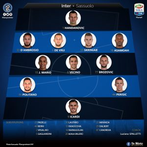 After the goalfest against Serie B outfit Benevento last weekend, Inter were optimistic going into the home fixture against a Sassuolo that Inter struggled against in the opening match of the Serie A season. Spalletti made many expected changes to last weekends lineup, changes that hardly anyone can disagree with beforehand. The defensive wall of Skriniar and de Vrij were back at the heart of defence, whilst Danilo D’Ambrosio was given the nod ahead of Croatian international Vrsaljko.