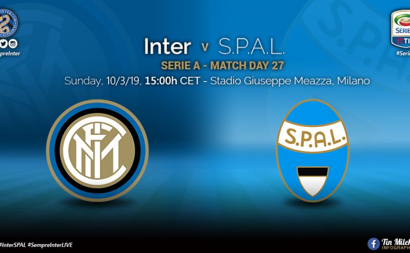 After having suffered a trio of winless away matches that have seen the Nerazzurri drop to fourth spot, they now return home to San Siro where they look to finally get a win against minnows SPAL. Match on Sunday at 15:00 CET.