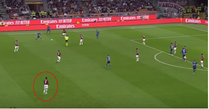 Indicative of Milan’s tactics, they were happy for Inter to have the ball for large periods of the first half and look to break when defenders had pushed on, shown by the first half possession stats of 57% to 43%.