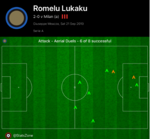 His improved aerial performance was shown, as he won 6/8 of his attacking aerial duals, as Romagnoli and Musacchio struggled with his physicality. Topping off his performance with a deserved goal, he now has three in four Serie A games.