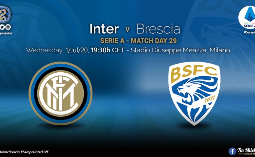 Inter coach Antonio Conte and his Brescia counterpart Diego Lopez, have decided to field the following 22 players from start in Match Day 29 of the 2019/2020 Serie A season, at the Stadio Giuseppe Meazza in Milan’s San Siro district, with kick-off scheduled for 19.30 CET.
