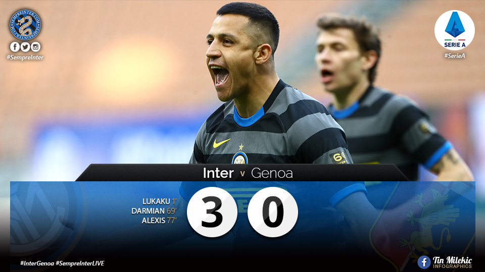 Inter defeated Genoa by 3-0 in the Serie A Match Day 24 clash between the two sides at the Stadio Giuseppe Meazza in Milan’s San Siro district.