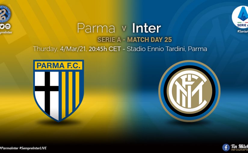 Inter coach Antonio Conte and his Parma counterpart Roberto D’Aversa have decided to field the following 22 players in tonight’s Serie A Match Day 25 clash at the Stadio Ennio Tardini in Parma.