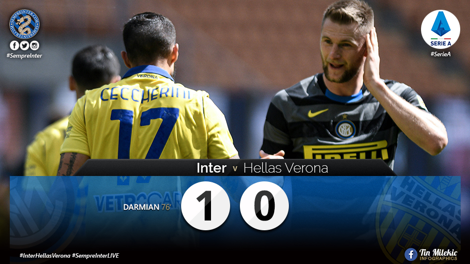 Inter defeated Hellas Verona in Match Day 33 of the 2020/2021 Serie A clash between the two sides at the Stadio Giuseppe Meazza.