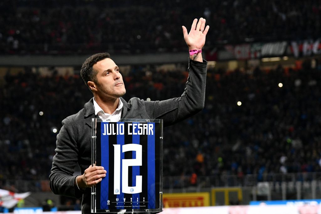 Inter legends Julio Cesar and Diego Milito shared a moment to pose for a photo together at the San Siro before the Nerazzurri’s group stage clash with Real Madrid yesterday.