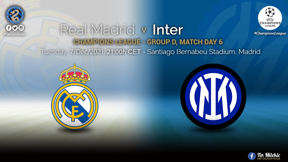 Inter coach Simone Inzaghi and his Real Madrid counterpart Carlo Ancelotti have decided to field the following 22 players in tonight’s final group stage clash of the Champions League at the Santiago Bernabeu with kick-off scheduled for 21.00 CET.