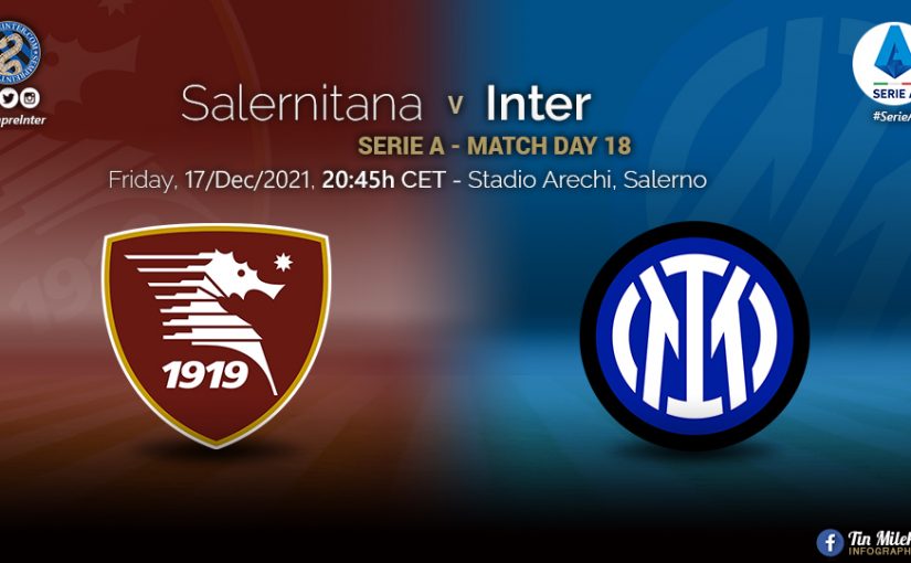 Top of the table Inter travel South to face bottom of the table Salernitana in a match where Inter might put some light between them and the chasing pack. Match today Friday at 20:45 CET.