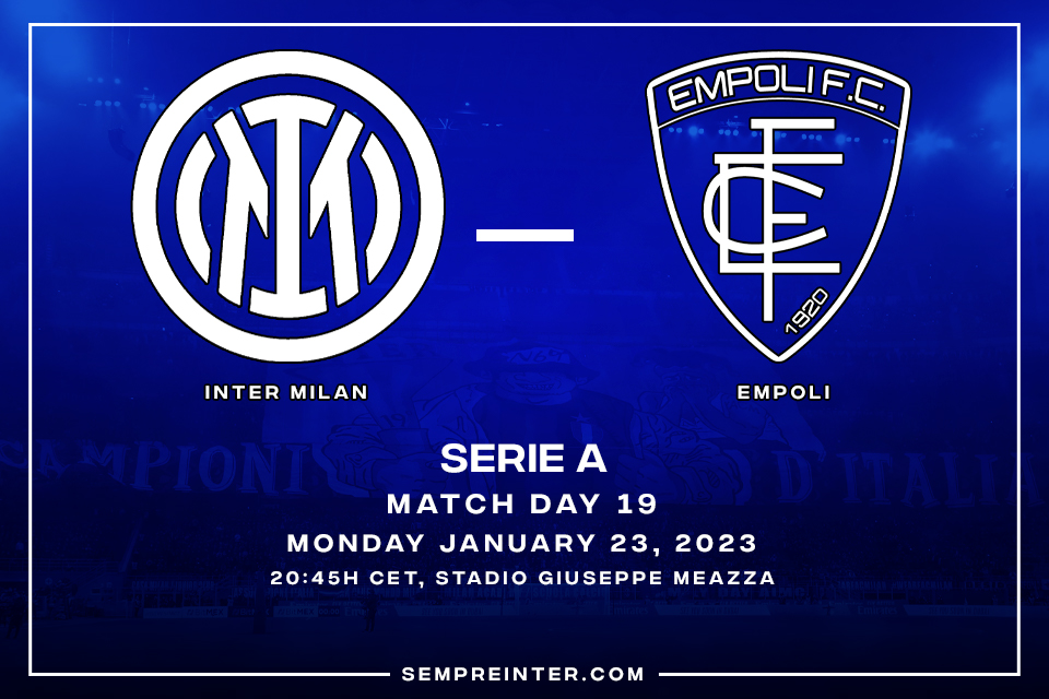 The Supercoppa Italiana winners host an in-form Empoli in Match Day 19 of the 2022/2023 Serie A season where the Nerazzurri are slowly trying to revive their Scudetto hopes. Match tonight at 20:45 CET.