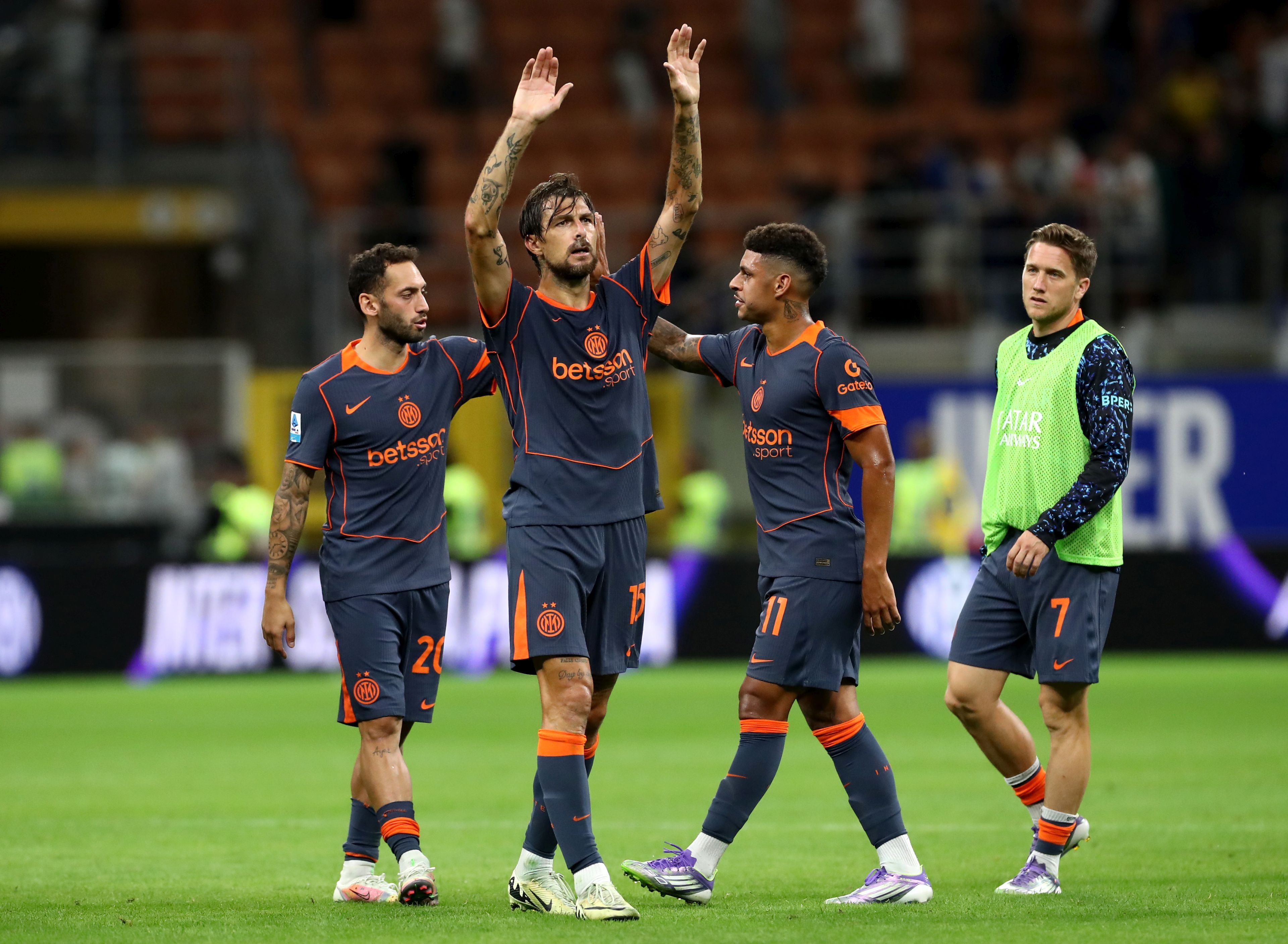 MILAN, ITALY – SEPTEMBER 21: Francesco Acerbi of Internazionale acknowledges the fans at the end of the Serie A match between FC Internazionale and US Sassuolo Calcio at Giuseppe Meazza Stadium on September 21, 2025 in Milan, Italy. (Photo by Marco Luzzani/Getty Images)