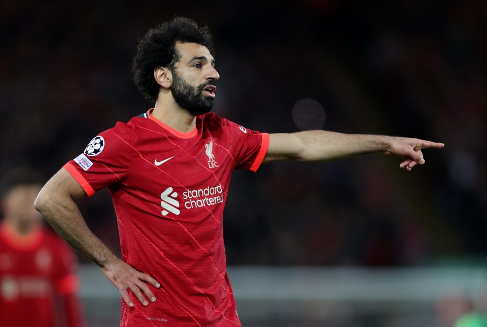 LIVERPOOL, ENGLAND – NOVEMBER 24: Mohamed Salah of Liverpool gives instructions to his team mates during the UEFA Champions League group B match between Liverpool FC and FC Porto at Anfield on November 24, 2021 in Liverpool, England. (Photo by Clive Brunskill/Getty Images)