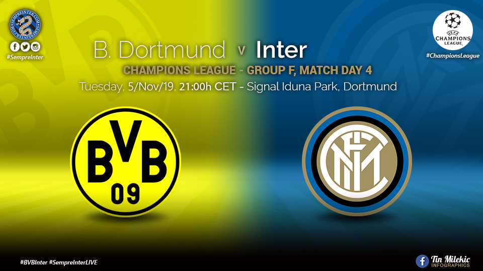 Inter coach Antonio Conte and his Borussia Dortmund counterpart Lucien Favre, have decided to field the following 22 players in tonight’s round 4 group stage match of the Champions League, with kick off scheduled for 21.00 CET at the Westfallen Stadion.